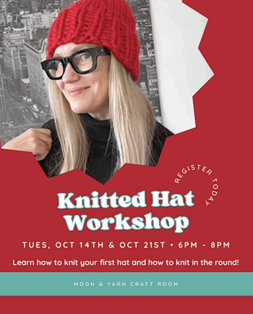Welcome to our Knitting Hat Workshop! Join us for an evening of fun and creativity learning how to make the Jen’s Half Hour Hat. This workshop is perfect for anyone looking to expand their skills and is a good class once you know how to knit and purl. In this class students will learn how to knit in the round, decrease stitches, and how to use DPN’s to finish your hat.